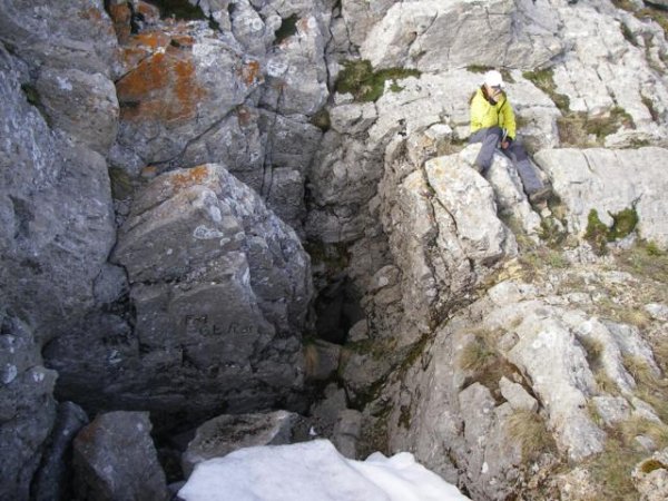 El S谩bado, Luis y Zo茅 subieron hasta el Pico Machamedio a ver si encontraban la boca de la FO-1 (Sil del Caldero), la cual se encuentra a pocos metros de la cumbre, y la situaron con el GPS.