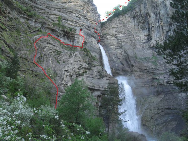 Aprovechando que Siro y Carmen tenían competición de aguas bravas en el río Ara, nos llevamos los achiperres para el sábado por la tarde después de la competición irnos a hacer la ferrata de Broto. Esta vía es de reciente apertura, ¡¡¡ OJO, en todas las guías la marca que es para iniciarse, no os fiéis, antes de hacer esta ferrata hacer otras más sencillas ejemplo (ferrata de la Virgen en Rodellar - Guara), abstenerse de hacerla gente con vértigo, puesto que en varios sitios es muy aérea, sobre todo en los 40 metros antes de llegar a la mina cueva, cuando el caudal es abundante como en la foto, la cosa se complica aun más a pasar la cueva y llegar a la cabecera de la cascada. Aquí la ferrata continua adentrándose por el cañón del Sorrosal, con roca mojada y pasos delicados sin grapas, pasamanos sobre la misma cabecera de la cascada, puente tronco sobre el gran caudal, es aquí donde deberemos poner los 5 sentidos y poner en práctica los conocimientos de barrancos y espeleo, más que los de escalada. Al salir del cañón la ferrata se vuelve facilona para terminar en el balcón de broto con unas vistas impresionantes !!!.