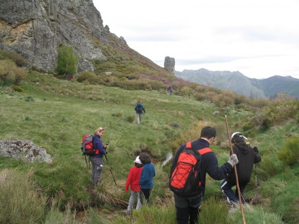 Travesía bonita, sencilla y recomendable para cualquier público que bautizamos como 'las tres colladas'. Partiendo de Aviados dirección Norte bordeamos Peña Galicia para llegar a la primera collada a la Izquierda del valle que alcanzamos en la cara Norte de Peña Galicia. Es este el único tramo ascendente y no presenta ninguna dificultad. Este primer collado nos enseña el Pico Polvoreda (Correcillas) y Peña Valdorria. De aquí todo es bajar al segundo collado que nos muestra Valdorria y nos hace decir eso de ¡Que pueblo más bonito!. Estamos enfrente de la ermita de San Froilán y solo nos queda rodear el arroyo de Valdecesar que alimenta la llamada cola de caballo de la cascada de Nocedo que nos lleva al tercer collado desde donde ya vemos todo el valle de La Vecilla y La Mata de la Bérbula, nuestro destino final. Fuimos: Juan Pedro, Ana, Javi y Raquel, Chorbo y Luis, Rogelio y Annie, Miche y Gloria, Pedro, Aurora con Sara, Luis Ángel, Blanca, Mª Carmen, Alicia, Marta, Ana y Javi (Animal). A la merienda se apuntaron Navarro, Isabel y Manuel.