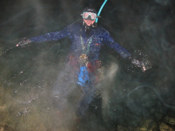Dos dias antes habia sido instalada por Navarro por lo que fuimos a plato puesto. Buceamos el lago Ete y Fende solo con gafas, tubo y linternas por supuesto.