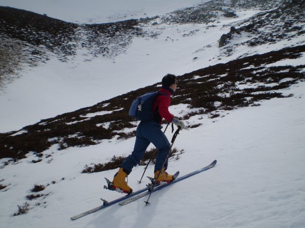 En una pequeña lengua que sube desde el aparcamiento de rio pinos hacia el agujas, no dejamos pasar la oportunidad de poner los esquis por primera vez en la temporada.