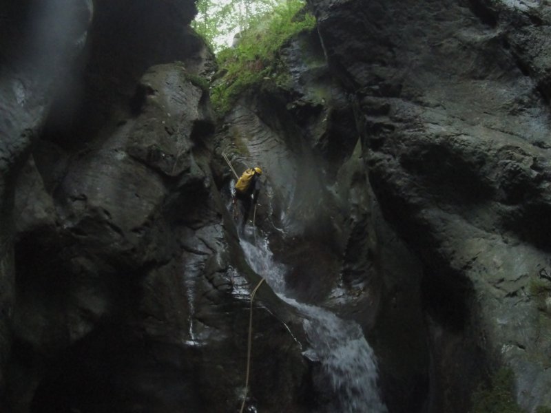 Descripci贸n de la actividad: Barranco en una tarde de verano, se hizo todo un poco m谩s largo de lo esperado y salimos con las 煤ltimas luces del d铆a, una vez dentro cay贸 una peque帽a tormenta que no tuvo m谩s consecuencias, el caudal tirando a escaso, pero aceptable.